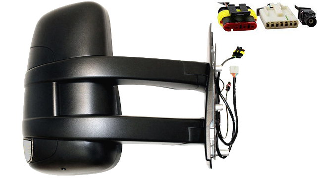 Retrovisor completo Derecho Espejo Angulo Muerto Eléctrico Convexo Térmico Con Intermitente Brazo Largo Con antena W16W 9 PINS 3 CONECTORES